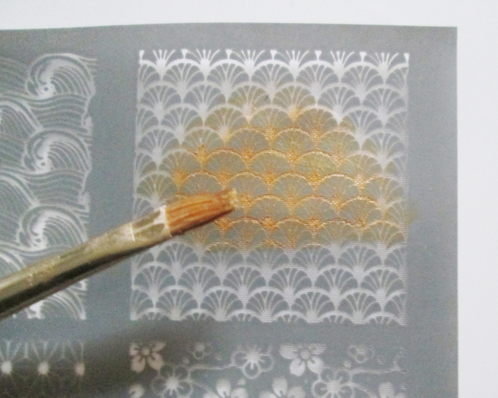 Je vous ai déjà parlé dans un tuto des pochoirs de Graine Créative. Et Creavea m’a offert un pochoir « Japon » à tester…
