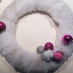 Et il me restait une couronne de paille de chez Action.  Et en farfouinant, j’ai trouvé quelques boules non utilisées par le sapin de Noël, de la fausse neige (comme on mets dans les crèches et au pied de certains sapins) , des pompons de chez Tiger et quelques étoiles des neiges.