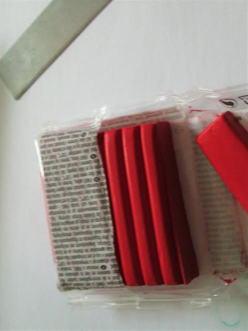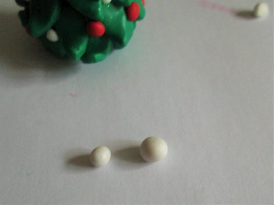 – Faire des boules avec la Fimo Effect Rouge Paillette, les poser à la base des feuilles.