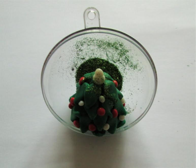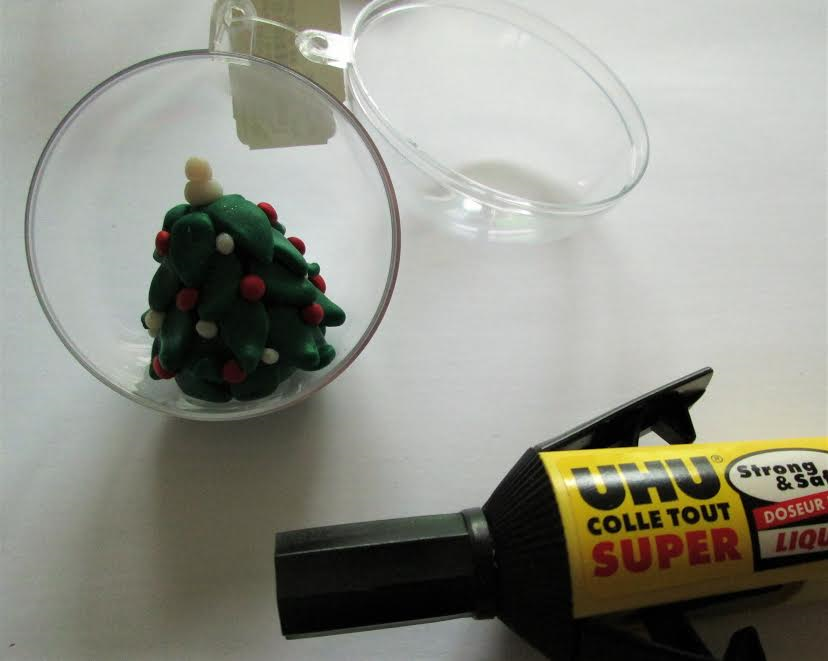 – Placer le sapin dans la boule pour qu’il prenne la bonne forme.