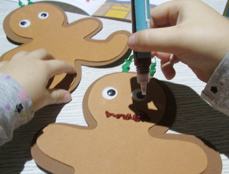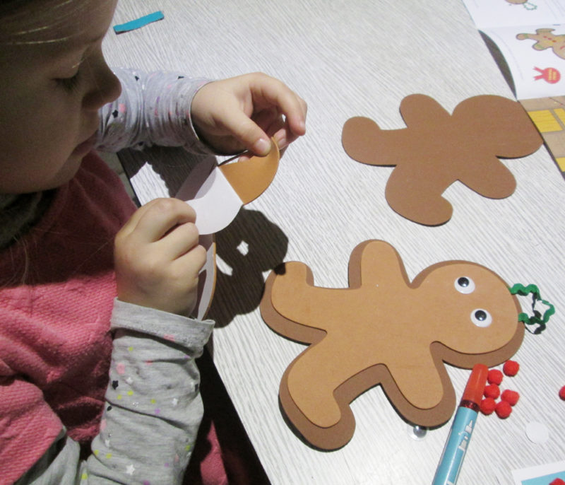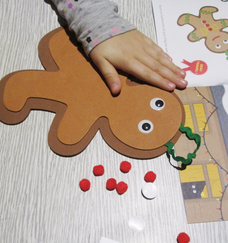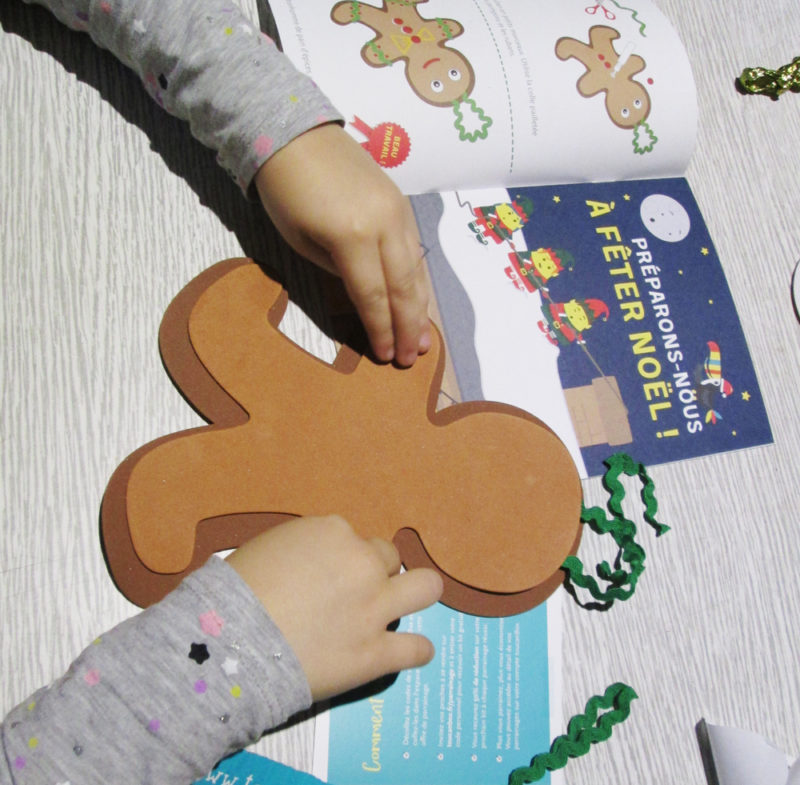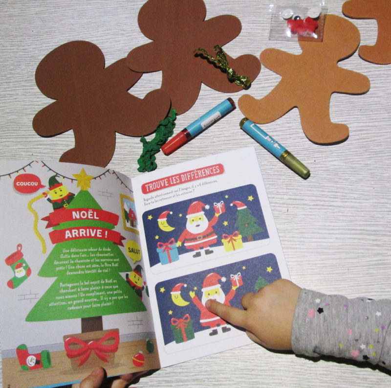 Cette petite box personnalisée spécial Noel contient le livret d’activités, le nécessaire pour créer deux décorations bonhomme de pain d’épices et toujours le petit badge « comme Ouah-Ouah ».